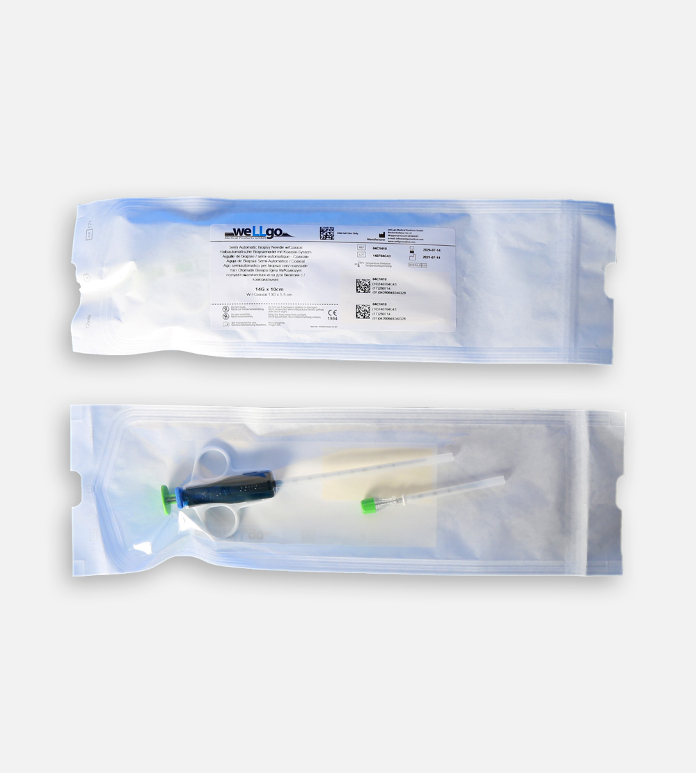 Tai vienkartinis spyruoklinis biopsijos prietaisas, naudojamas minkštųjų audinių ir organų histologiniams mėginiams paimti. Pusiau automatinė biopsijos adata turi dvi poslinkio galimybes: 1 cm ir 2 cm. Pakuotėje yra koaksialinė adata.